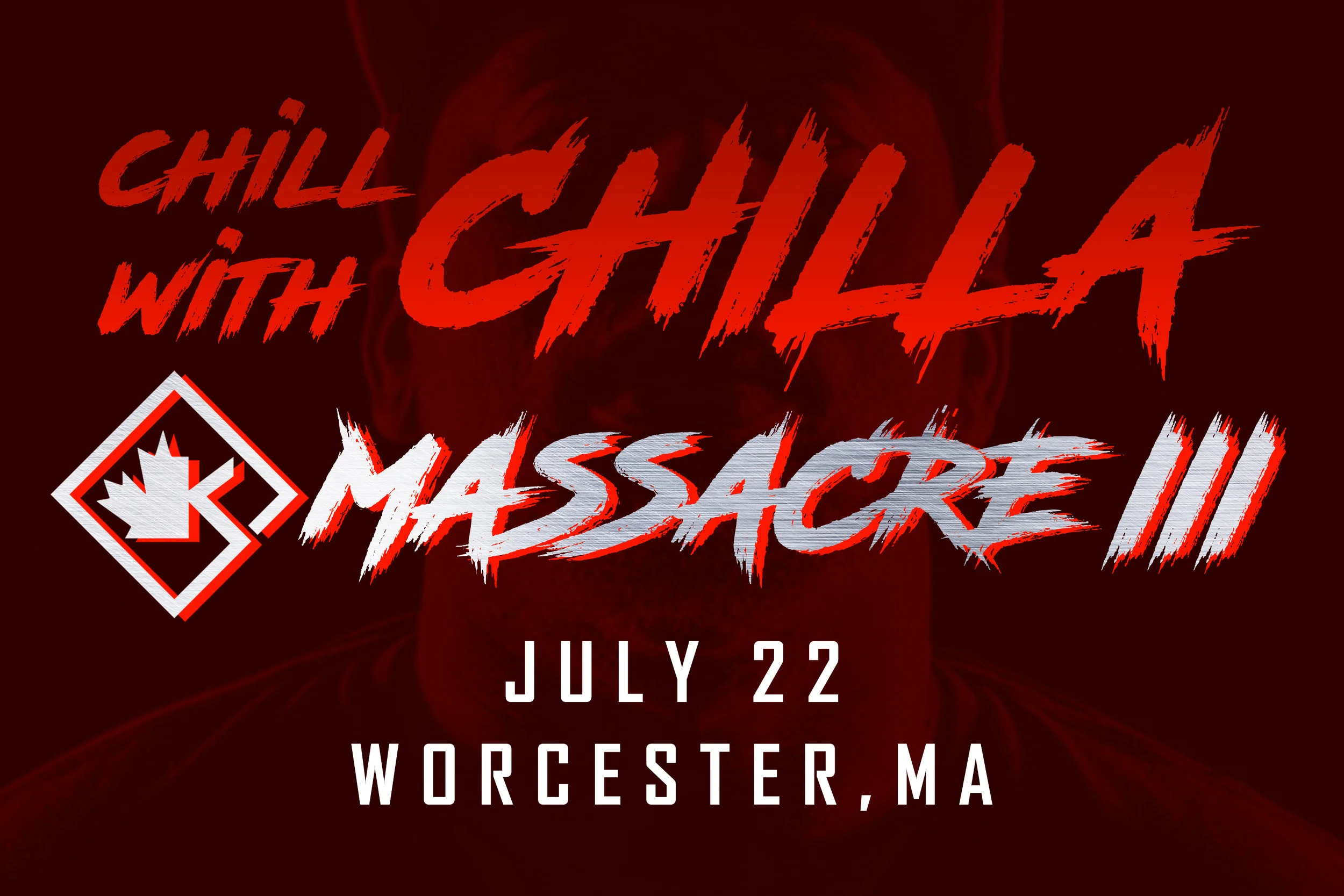 Massacre 3 is around the corner. On July 22nd, 2017 at the Worcester Palladium, King of the Dot will host some of the biggest battles of the year. With that being said, our favorite contest is back! Purchase a t-shirt, hoodie or hat from www.chillajones.com between now and July 7th and you will be automatically entered to win 2 tickets to Massacre 3, a bunch of Chilla Jones merch including an autographed KingPen hat and a chance to sit and have lunch with Chilla Jones prior to the event. The winner will be announced on July 8th!